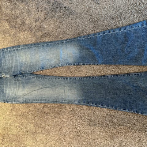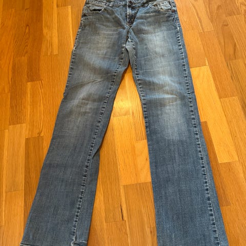 Den er low rise, den har flare og den har en rekke med sorte crystaller fra livet og ned begge benene for å utsmykke flare'en. Virkelig nice!