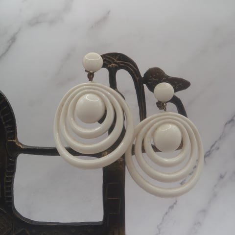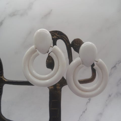 Vintage øredobber / ørepynt klips hvit farge (ca. 5.7 cm)