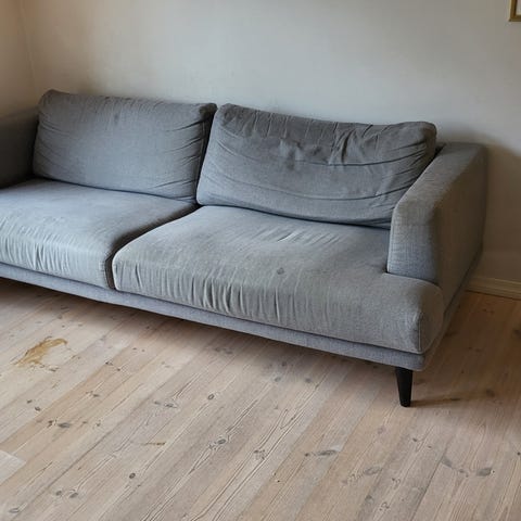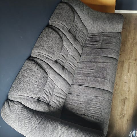 I heltre, så er tung! Må demonteres og bæres av den som henter, ned fra 2. etg i isolert rom på garasjeloft. Det er en smal døråpning som sofa må fraktes ut fra, derfor må sofa demonteres.