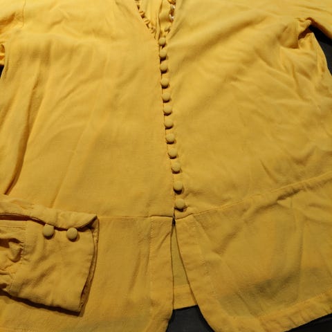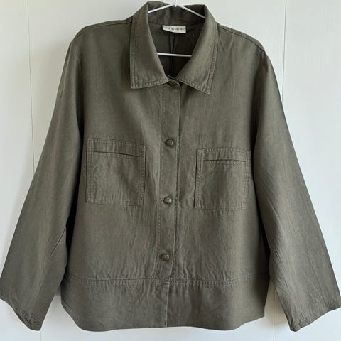 Jakken er i 100 % lin i str 44. Merke er Jensen. Lange ermer med en liten splitt. Feminint snitt.