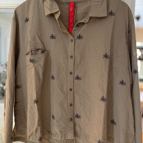 Olaskjorte fra Cubus størrelse medium. Lys blå med enda lysere felter innimellom. Slim fit modell, litt innsvingt i livet. Trykknapper. 100% bomull.