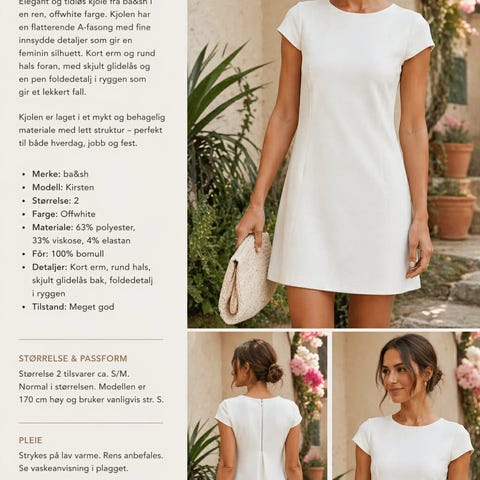 Tidløs kjole med navn Colombine fra merket ba&sh i størrelse 0, tilsvarer størrelse small/xsmall. Pent brukt og i god stand. Har glidelås bak. Passer perfekt til jobb eller selskap.
