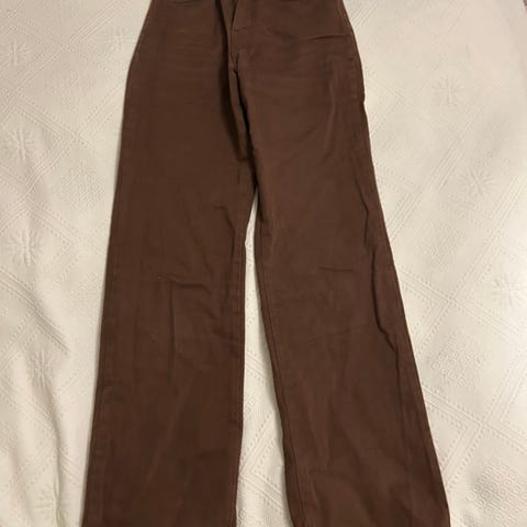 Fin Jeans bukse med en fin brunfarge fra Lindex. Har blitt brukt ca 5-7 ganger men har ingen synlige bruksmerker. Selges for 50 kr. Send mld hvis du vil ha flere bilder eller lurer på noe. Størrelse: 170/S. Den ble kjøpt i størrelse 170 men det tilsvarer størrelse XS’