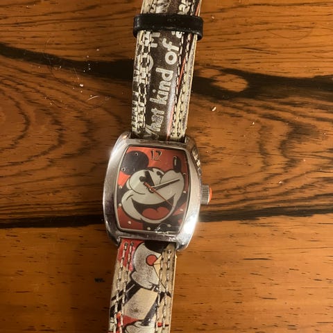 Klokken er ubrukt men har ligget litt "rundtomkring" så den har riper/bruksspor på urkassen.