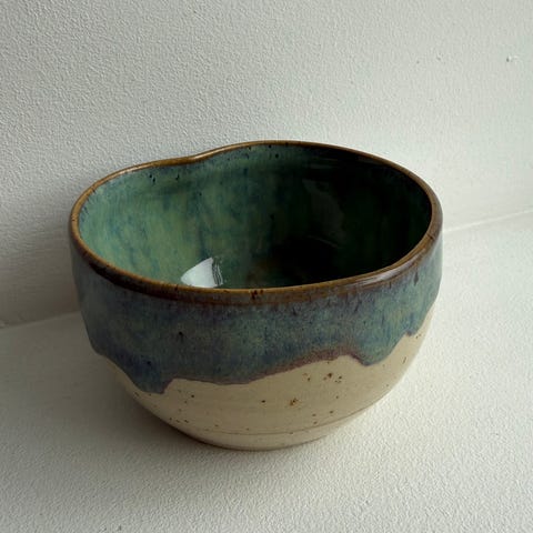Sett med 4 skåler i eske, modellen Green Jungle. Helt nye og aldri brukt. Kraftig stengods med fantastisk glasur.