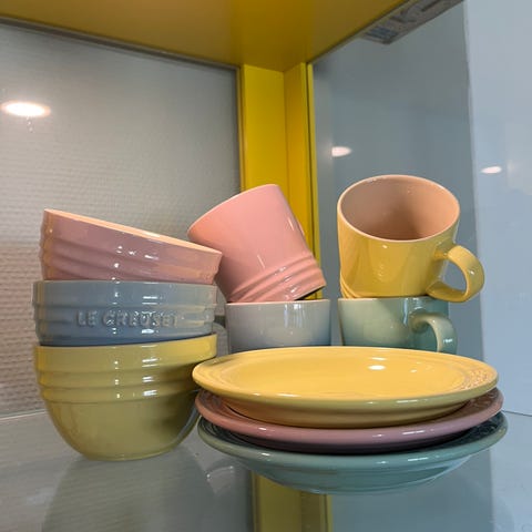 Fine deler i Le Creuset i fargen Soleil* selges.