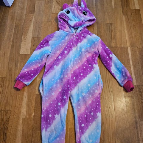 Pent brukt enhjørning kosedress str. S selges. God og myk på sene sommerkvelder eller høst/ vinter. Selges 200,-kr + postfrakt