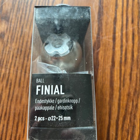 4 stk. endestykker til gardinstang i massiv messing, sprayet hvite med malingsspray, Ø: 28 mm, de er fleksible og kan passe til større diameter på stanga, selges samlet kr. 80,-. Hentes Lillehammer. Kan også sendes mot at kjøper dekker porto. Kan også sendes med PostNord kr. 69,-.