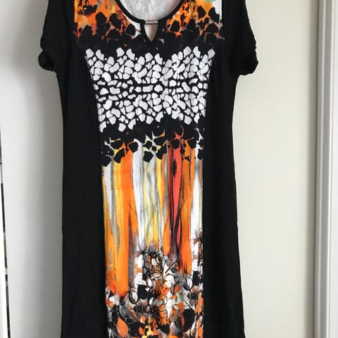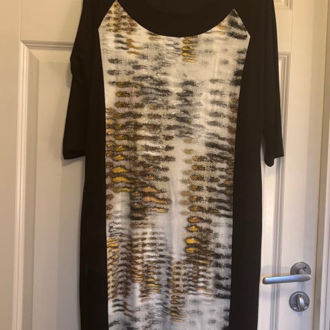 Lekker kjole fra Bandolera i str 42. I sort og hvitt. Korte ermer.Elegant passform. Ikke brukt. Sender gjerne med helthjem.