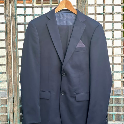 Nydelig blåfarge, og brukt kun få ganger. Før pris er ca 4400kr, selges for 400kr. Hvit skjorte fra Seves Seas kan medfølges for 150kr (før pris 500 kr slim fit) str 37/38.