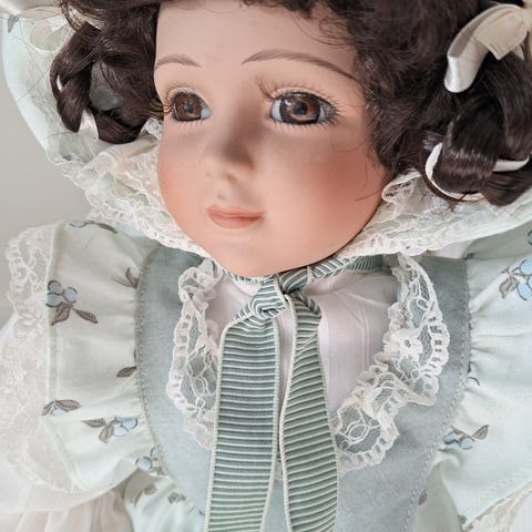 Gammel dukke - porselensdukke - med originale klær