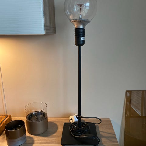 Hel og fin bordlampe. Skjermen kan justeres i ulike retninger.