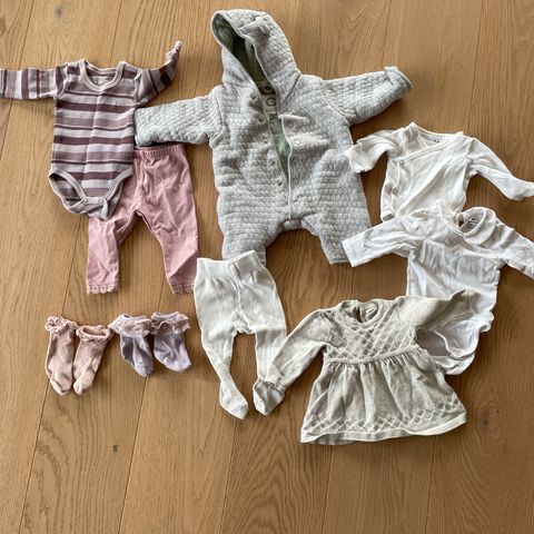 Liten klespakke i str 50 selges. Svært pent brukt.
