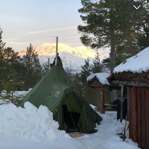 Varanger Lavvo 8-10 med stang og bunnduk. Brukr 1x. Superlett å sette opp og ta ned. Romslig med plass til både folk og bagasje. Ny pris på XXL 7998,-