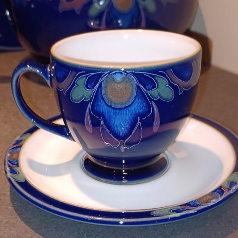 Er det noen som har tekopper med skåler til dette serviset? Ikke asjett som på bilde, men tekopp som bilde og skål. Norsk , men vet ikke navnet. Må være uten skader.