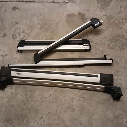 Selges helst som en pakke til 3000 kr, eventuelt ski/snowboard-stativet alene for 2000 kr og sykkelstativet for 1000 kr.