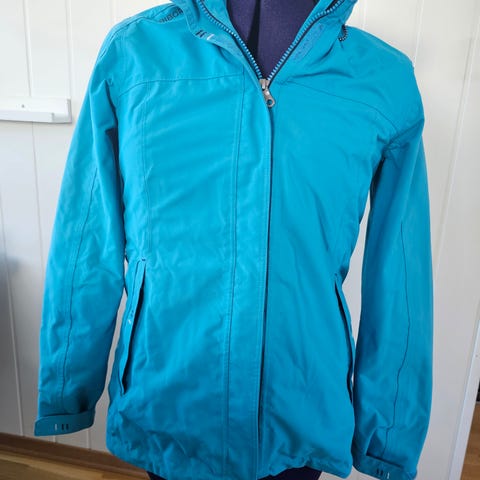 Jakken har flere praktiske lommer og en avtagbar hette.