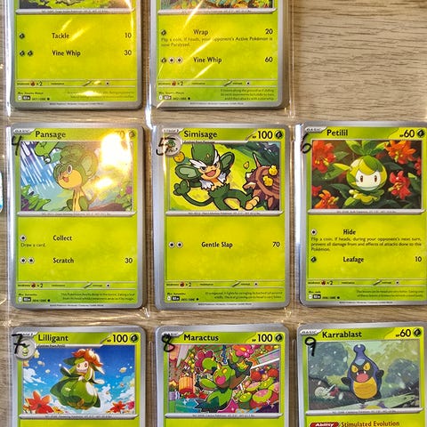 All skriften som er på bildene, er på lommene kortene ligger i. Alle kortene er tatt ut av pakker, av oss, og rett i lommen de ligger i.
