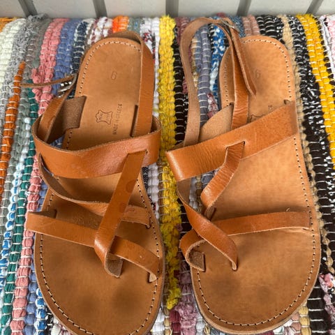 Mørkebrune retro skinnsandaler, nesten ubrukt. Behagelige på foten.