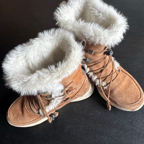 Søte og behagelige «pels»-støvletter til jente, nydelig mykt fôr. Gode såler som ikke sklir.