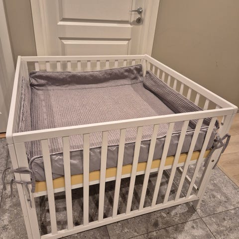 Lekegrind selges godt brukt av 3 barn. Trenger nytt maling strøk og må kanskje limes noen sprinkler. Leketeppe følger med.