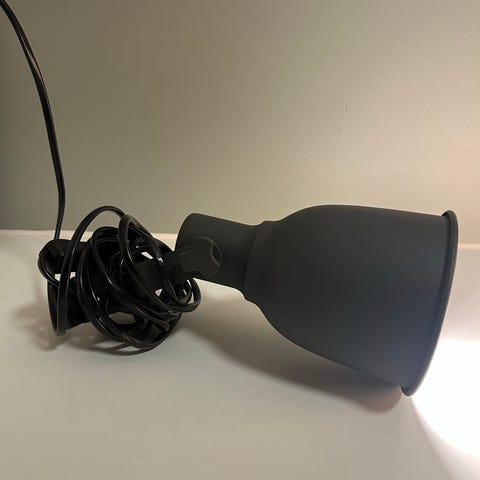 Ikea Hektar gulvlampe. Kan trenge en vask, ellers god som ny. Selges med fungerende pærer i alle lampesokler.