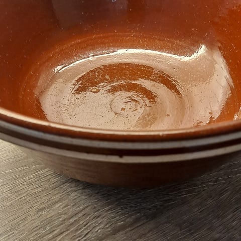 Keramikkbolle med mye bakehistorie da den har gått i arv. Fortsatt mange år igjen.