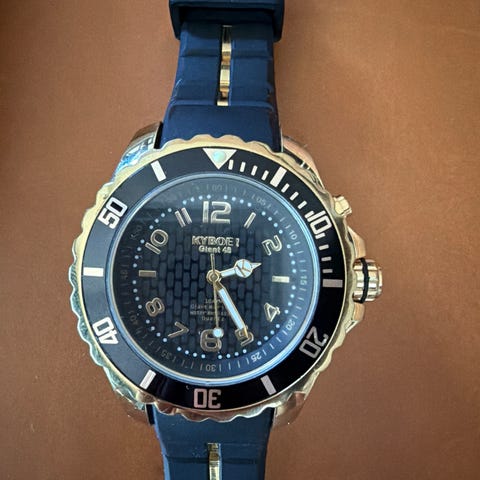 Moteklokke fra Cream Delux. Pen i sort og gullfarget. Ubrukt i esken.
