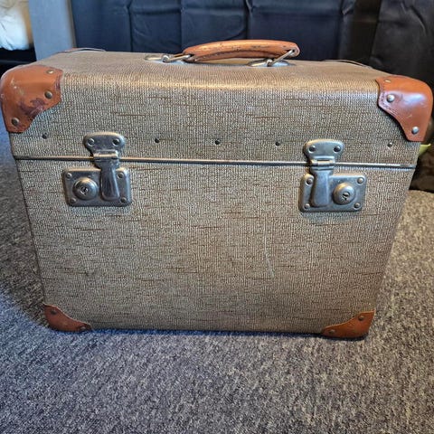 Eldre og godt brukt retro symaskin selges. Stått kun til pynt samt noe lagret i bod en stund. Lokket har mistet håndtaket sitt for lenge siden.
