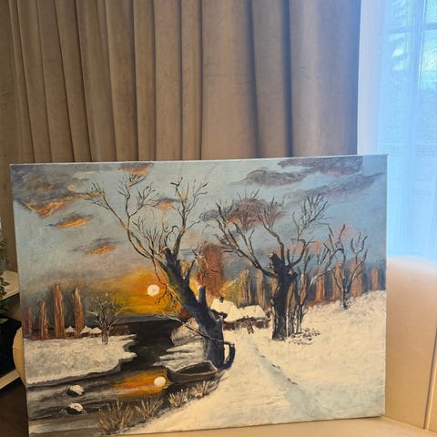 Malerier selges fra kr. 800 til kr. 1,600. Gi gjerne bud på maleriene