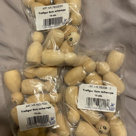 Pakke med hode, to armer og to ben til å sy sin egen bamse. Kjøpt på hobbybutikk for en del år siden. Har aldri vært åpnet. Hodet ca 10 x 12 cm, armer ca 10 cm og ben ca 12 cm.