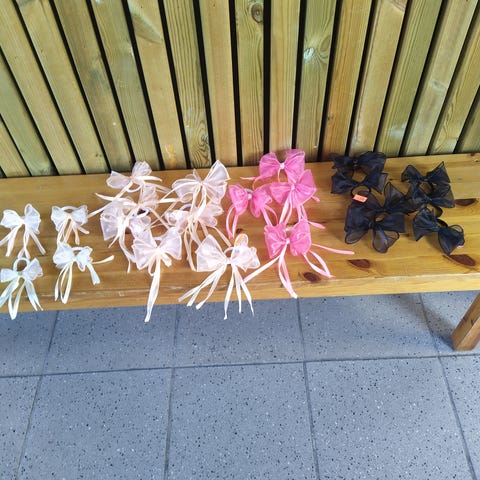 Selges håndlaget håret strikker,håret bånd og sløyfer.Det er mye på tilbudet.