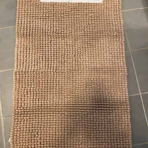 Tykk og god, beige, baderomsmatte i bomull selges.