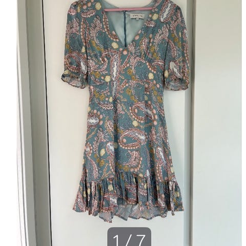 Nydelig kjole fra Hale Bob. Materialet er silke og rayon. Strikk i livet og helforet. Veier veldig lite, så perfekt å pakke med seg på tur. Kjøpt som vareprøve. Lenken og det siste bildet viser kjolen i lang utgave; https://www.pandoras-as.no/aubrey-lang-kjole-pink?gad_source=1&gad_campaignid=17349227228&gbraid=0AAAAAollVNGKdSLq-lAT0PFtMdHL_y5eQ&gclid=EAIaIQobChMI1JzPwfmKjQMV5gqiAx1vZCaHEAQYASABEgJXM_D_BwE