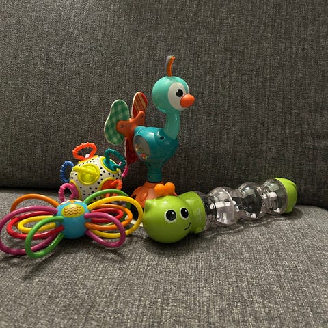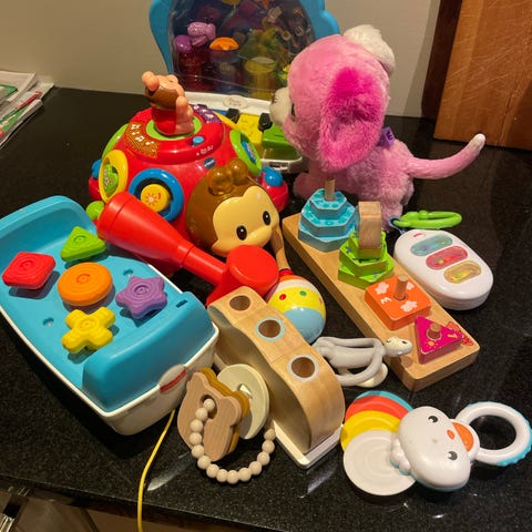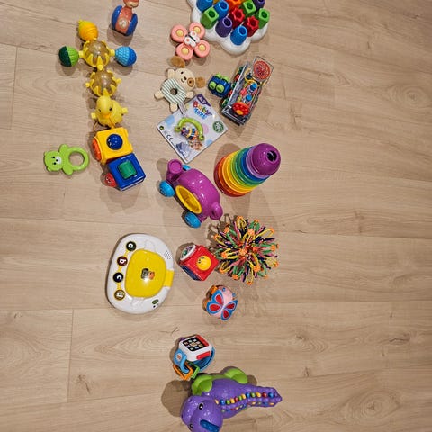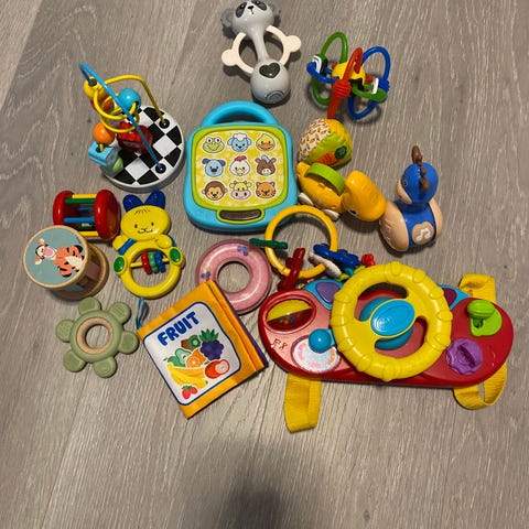Masse fine babyleker 0-2 år. Musikkinstrumenter,rangler,aktivitetsblokk,stableleker,myke bøker osv... Har ikke bilde av alt men alt er i god stand..lenge siden de har vært i bruk så mulig batterier må byttes ut.
