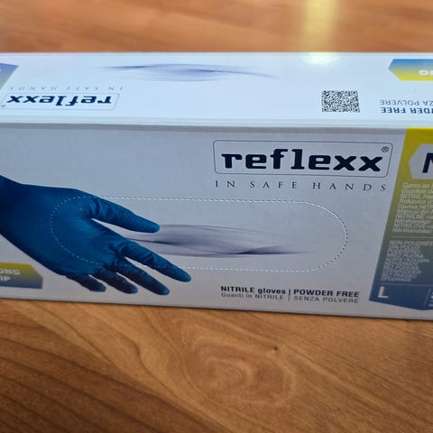 Nitril pudderfrie enangshansker av god kvalitet i størrelse M og L selges. Det er 100 stk i pakken. 50 kr per pakke.