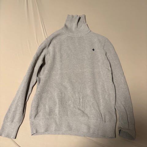 Clark Ross genser for herre i størrelse M. Genseren er i gråmelert farge med brede horisontale striper i ulike gråtoner. Rund hals med ribbestrikk i hals, nederkant og mansjetter. Materiale i alpakkaull gir et mykt og varmt plagg egnet til hverdagsbruk og som mellomlag på kjølige dager.