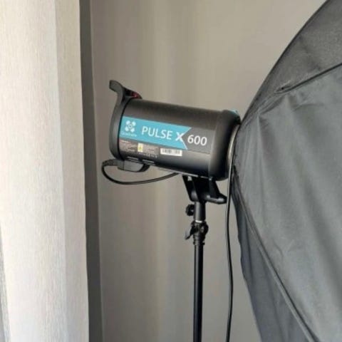 Pakke med mobilgimbal, ekstra magnetisk LED-lampe, fire fargefiltre, håndleddsstropp og veske.