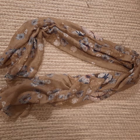 Vakkert lyserosa sjal med sommerfugler. Pent brukt. Usikker på materialet det er laget av. Mål på siste bilde. Hentes i Ski eller sendes mot betaling av porto.