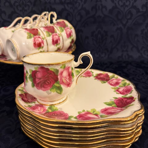 Elizabethan Rose Garden kaffeservise porselen blomsterdekor hvit