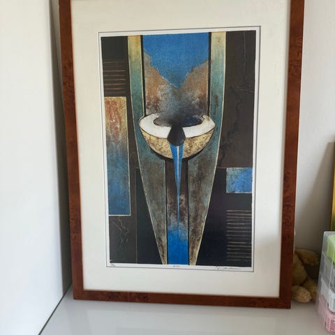 "Kolon" i ramme av Stig Andresen selges for 3800. Mål ytre rammekant: 70 x 72 cm.