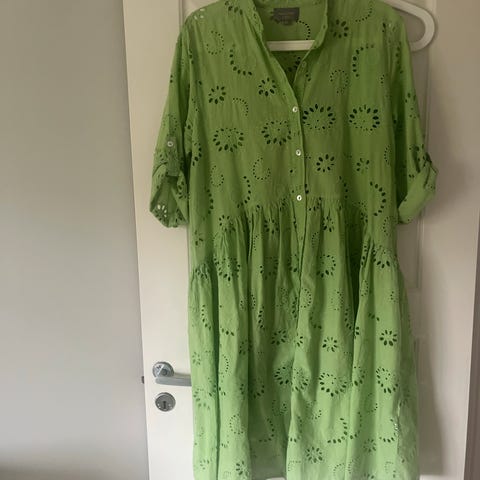 Lekker kjole fra Marc Lauge,- brukt to ganger,- selges rimelig. Nydelig svak olivengrønn. Kjolen er mye flottere på enn det bildene tilsier.