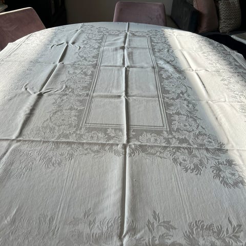 Stor kvadratisk duk selges. Størrelsen på duken er 90x90 cm.