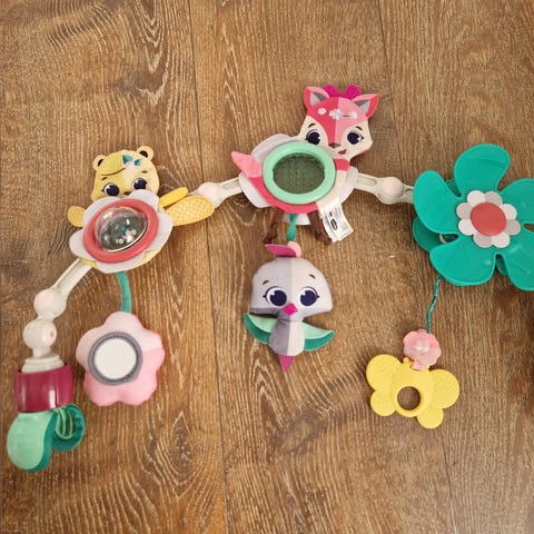 Pent brukt vognleke, grå og rosa elefant. Myk og god.