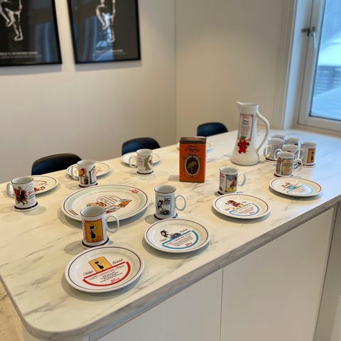 4 stk har små skall i kant som er vanskelige å se pga dekoren. Ellers veldig pene for alder.
