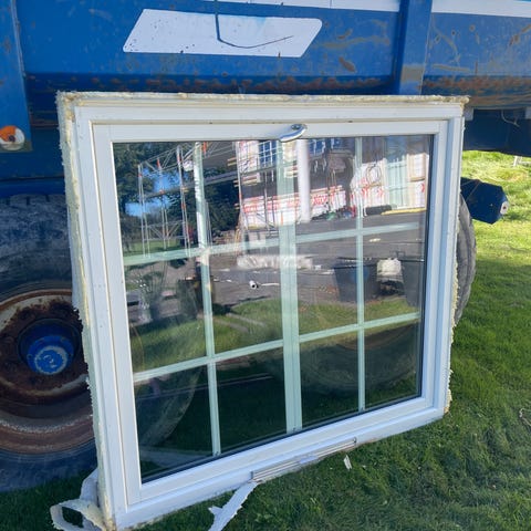 Gammelt vindu. Ksn brukes opp igjen til garasje, hytte eller hva det måtte være. Mangler karm. Eller gi bud.