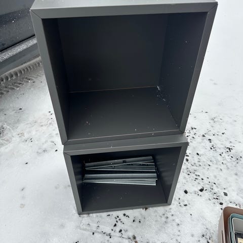 To flotte hyller i hvitt og blått. Helt nye i butikk embalasje. Hyller kan henges på forskjellige måter, enkeltvis eller sammen. Kjøpt i Møbelringen for ca.2 år siden.