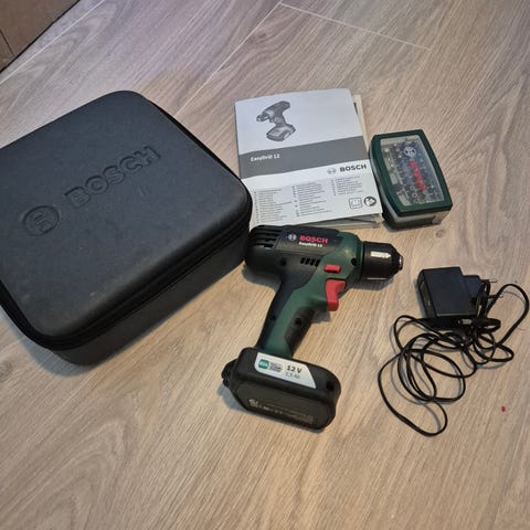 Eldre, men komplett Bosch BM 7,2 E elektrisk bormaskin og skrutrekker.