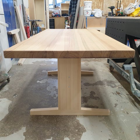 Gammel trehvitt spisebord på bukk m løs bordplate. Bukk kan demonteres. Ingen skader, fin elde Str. L 160 x B 80 x H 74 cm Hentes Trondheim