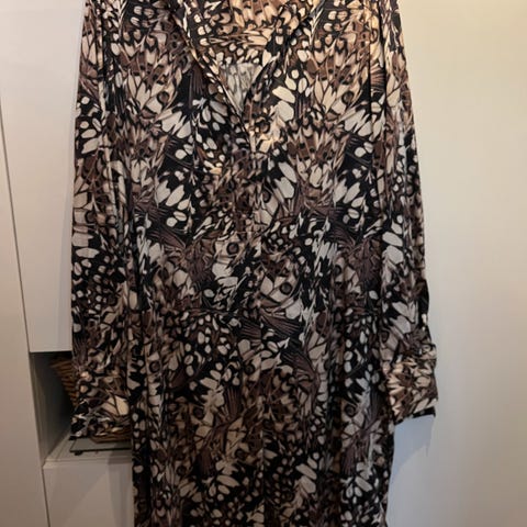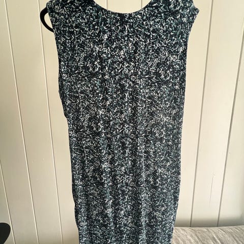 Kjolen er såvidt brukt og helt plettfri. Moddllen er i silke med litt stretch, har atrikk i livet, fast mørkeblå underkjole og splitt i halsen.